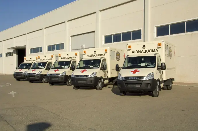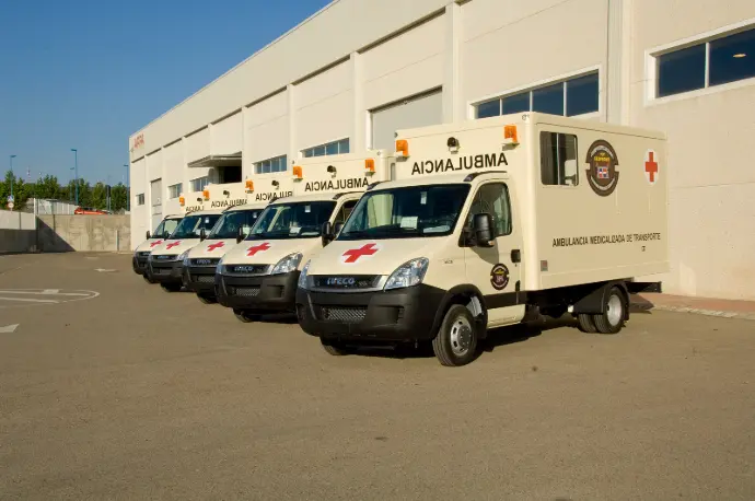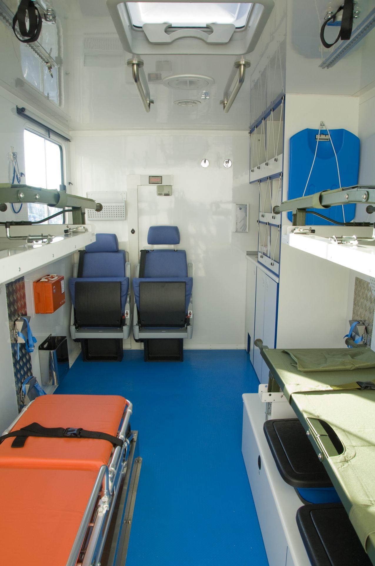 Vehículo destinado al transporte de heridos y enfermos, y de elementos de cura y auxilio.