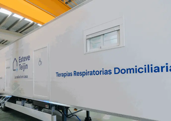 Terapias respiratorias domiciliarias, montada sobre semiremolque de 13.5 mtrs. de longitud. Cuenta con 2 consultas médicas, 2 salas de espera y 1 aseo adaptado. Dispone de plataforma PMR exterior para el acceso de pacientes a la unidad.