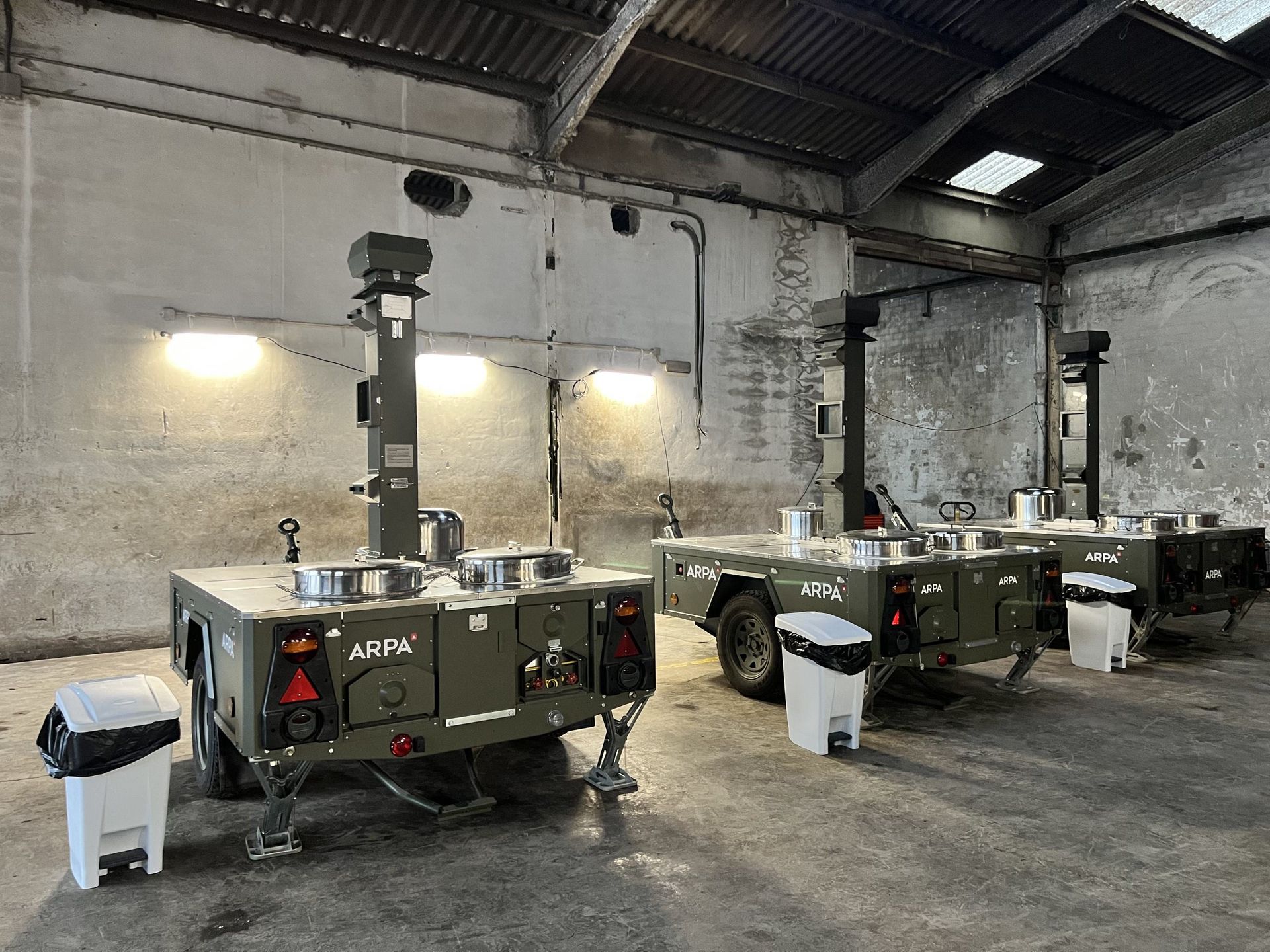 Gracias a la experiencia de ARPA en el despliegue rápido de infraestructuras de campaña, se ha instalado una cocina central en Alacuás equipada con tres cocinas industriales ARPA 2000. Con la colaboración de voluntarios y donaciones de alimentos de los Bancos de Alimentos de Aragón y Valencia, se están preparando más de 4.000 comidas diarias, adaptadas a las necesidades de diferentes grupos poblacionales.