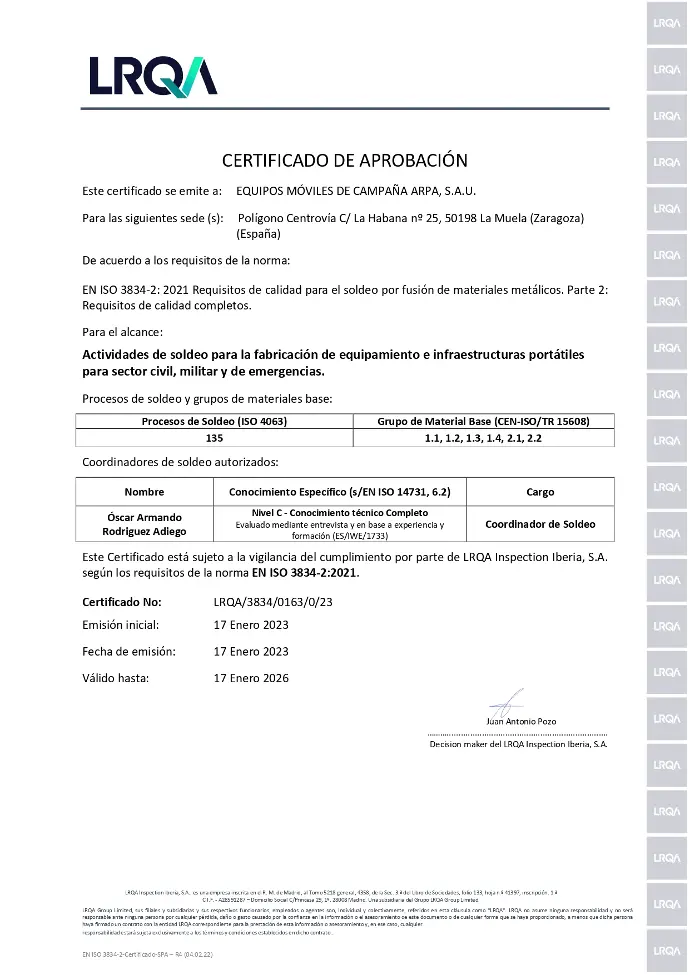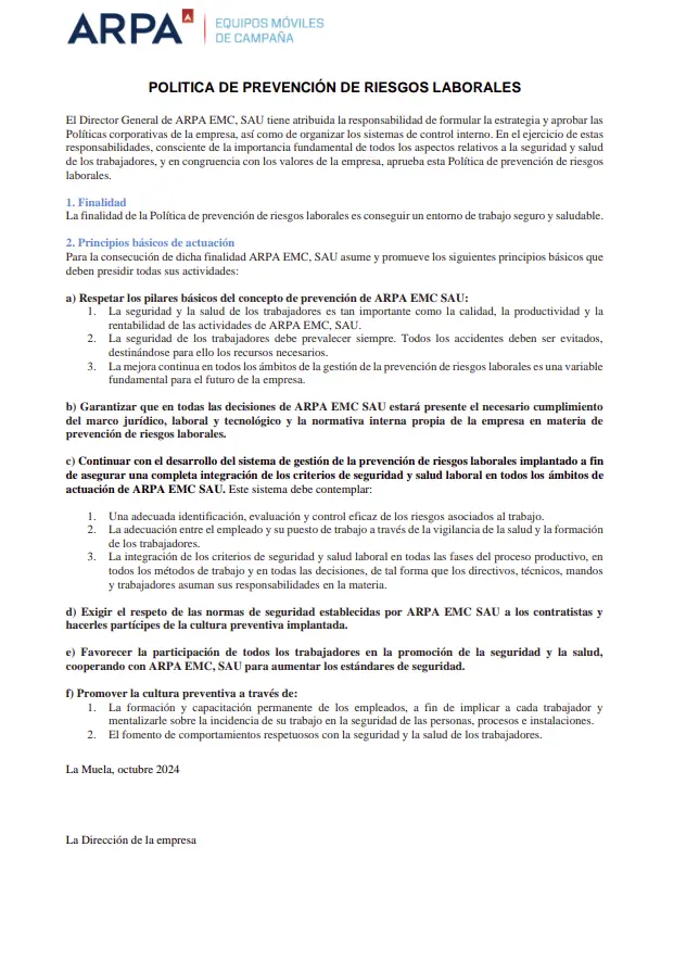 El compromiso de nuestro SAT es claro: maximizar la disponibilidad, prolongar la vida útil y mejorar el rendimiento de cada sistema, reforzando la confianza de nuestros clientes en ARPA como socio tecnológico y estratégico.
