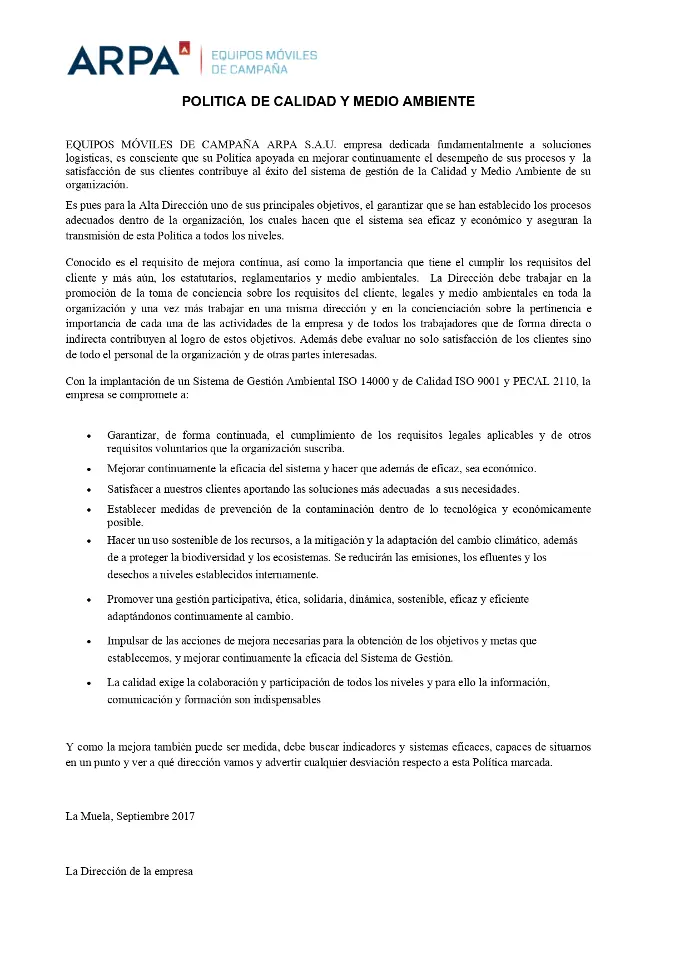 ARPA es una empresa familiar, de capital 100% Español fundada por D. Antonio ARPA Romero en 1968.