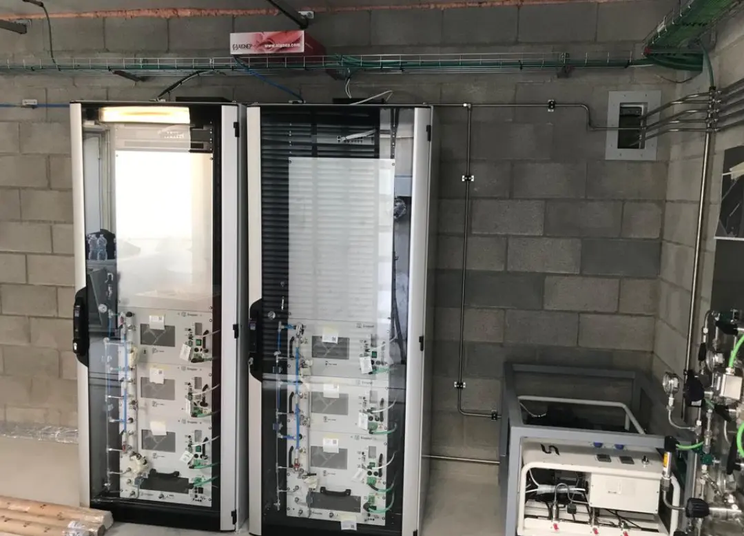 Además, la planta también cuenta con un sistema de compresión de pistón compacto y modular que puede alcanzar hasta 350 bar, así como un reservorio de hidrógeno, junto con un reservorio de hidrógeno de baja presión y otro de alta presión de tipo IV y III, respectivamente.
