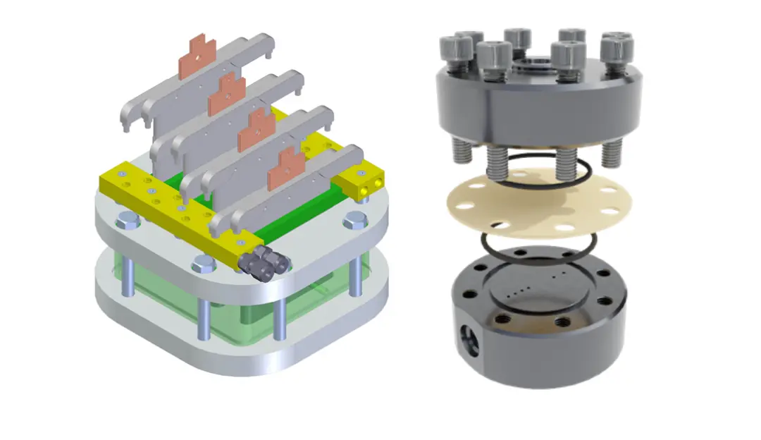 Este dispositivo albergará la MEA - Membrane Electrode Assembly - y el electrolito de KOH bajo, que activa la correspondiente transferencia de carga negativa.