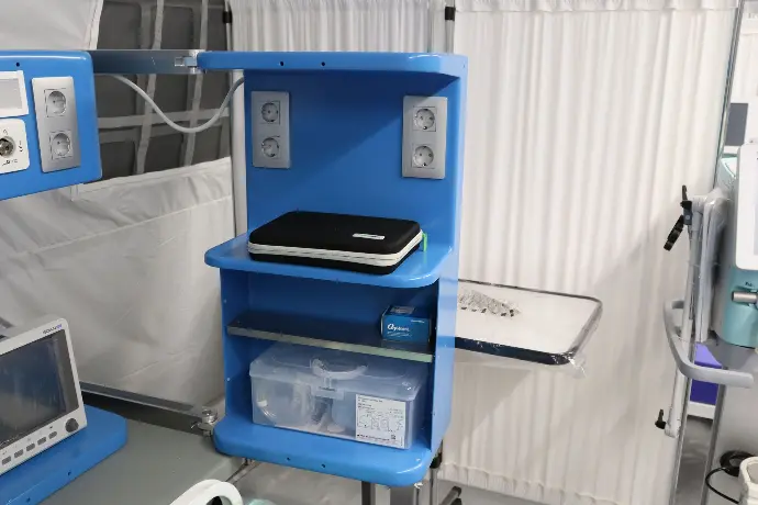 Construida en fibra con alojamientos móviles adaptables, proporcionando alta flexibilidad y compatibilidad. Facilita el acceso al paciente, evitando el colgado innecesario de mangueras y tuberías de gas.